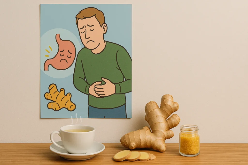 Ingwer gilt als ein bewährtes Hausmittel, das bei Übelkeit, Völlegefühl und Verdauungsproblemen helfen kann. Die enthaltenen Scharfstoffe wie Gingerol fördern die Magensaftproduktion und unterstützen die Magenbewegung.